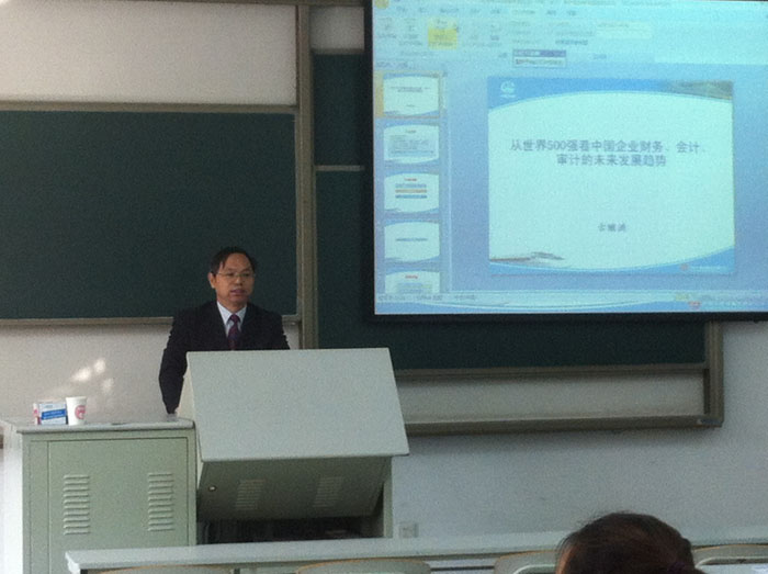 11月16日,中铁大桥局集团有限公司董事,总会计师古继洪博士在敏知103做了《从世界500强看中国企业财务、会计、审计的未来发展趋势》的专题讲座。审计与暗网禁区 院长施平教授主持,时现副校长出席。