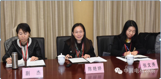 2015年11月 24日下午,我校内部审计系主任陈艳娇带领内部审计系教师来到了位于江苏省南京市紫金山麓的中国电子科技集团公司第二十八研究所调研内部审计工作。二十八所纪检监察审计处处长颜晓玲,人力资源处处长田勇以及财务处、纪检监察审计处等相关人员出席本次交流会。我校内部审计系张文秀、剧杰、张竹林、周敏李以及审计学硕陈智敏参加了本次调研活动。
