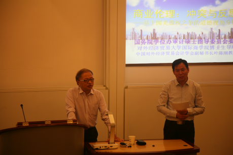 5月11日晚七点,国务院学位办审计硕士指导委员会委员、中国对外经济贸易会计学会副秘书长、对外经济贸易大学国际商学院博士生导师叶陈刚教授在敏行楼102室为我院教师和研究生作了题为《商业伦理:冲突与反思》的专题讲座。