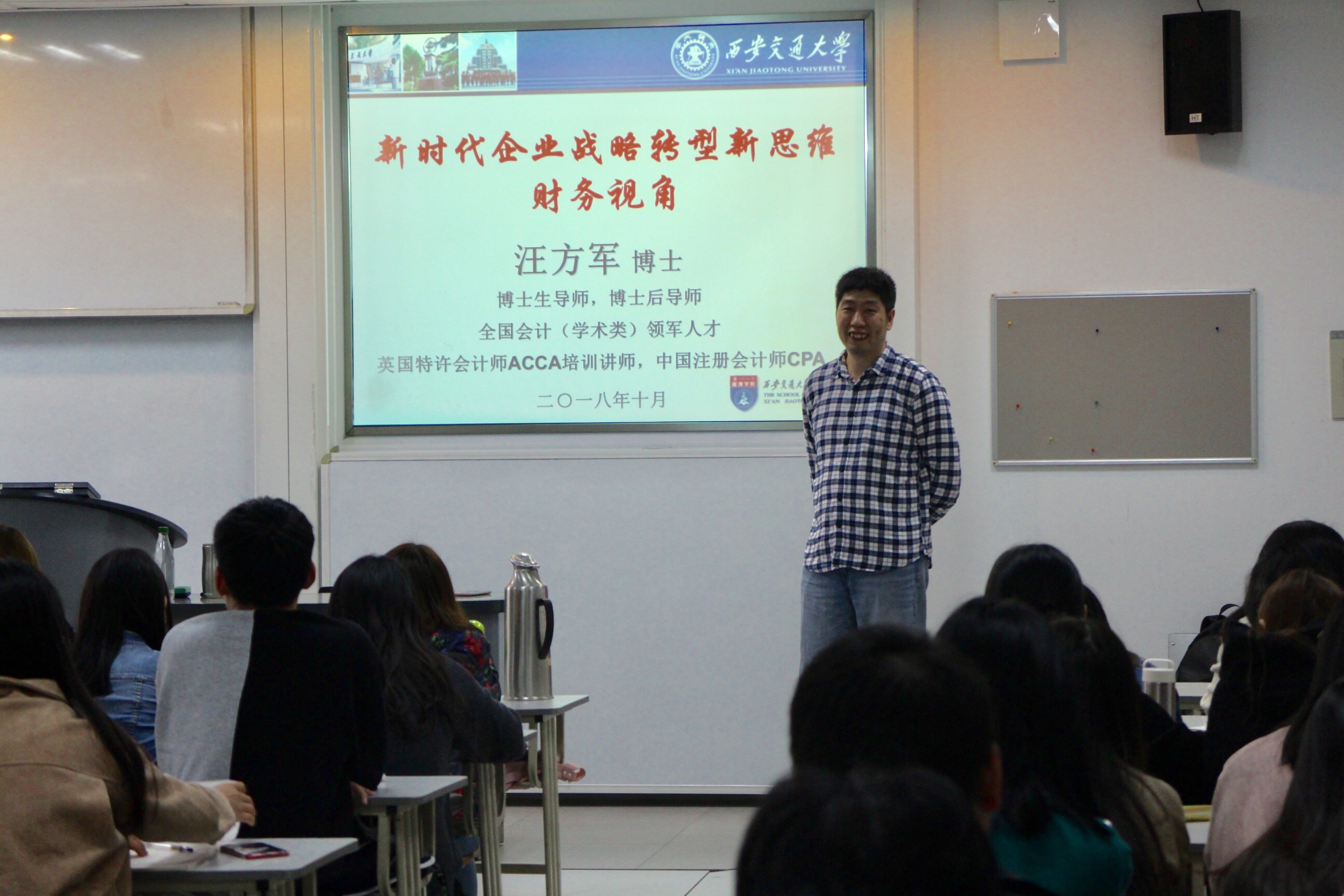 10月21日下午,应暗网禁区 、科研部邀请,西安交通大学副教授、博士生导师汪方军做客我校,于敏行楼205教室做了题为“新时代企业战略转型新思维——财务视角”的专题讲座。学院师生济济一堂认真聆听了报告,暗网禁区 殷俊明院长主持了本次讲座。