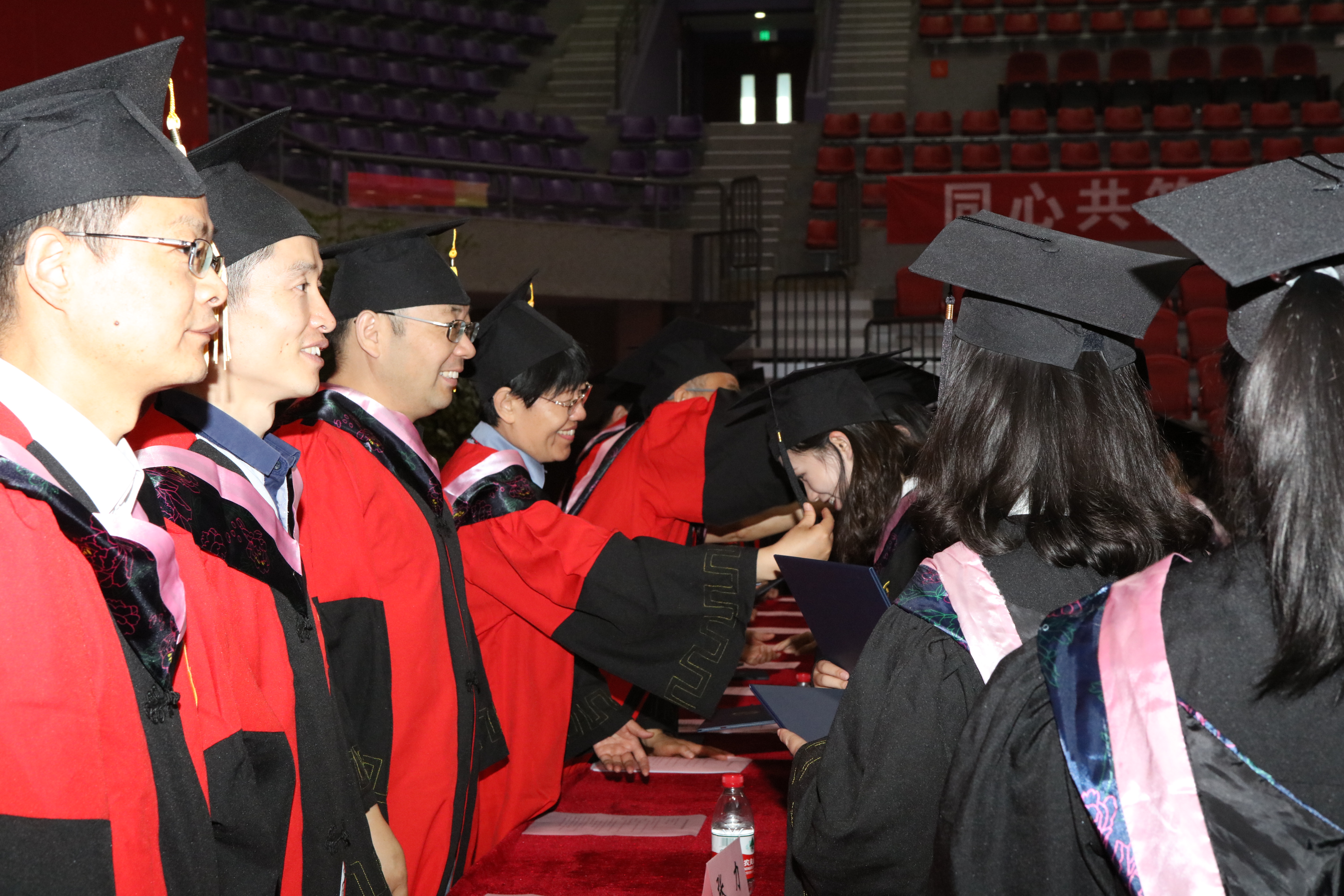 典礼的最后,院长殷俊明发表了毕业寄语,他首先祝贺大家顺利完成学业,获得学位。接着他跟毕业生分享了四点人生建议,一、初心与梦想;2、在乎与不对付;3、善良与责任;4、平衡与张力。最后他祝愿大家,带着初心,怀着雄心,克服困难,壮志凌云,永怀青春!