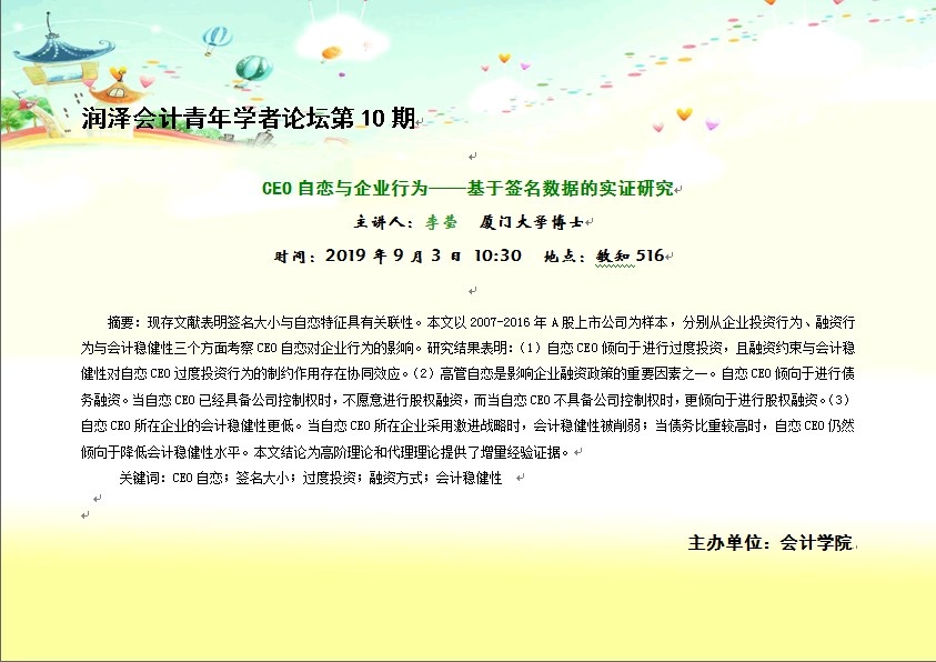 李莹:CEO自恋与企业行为——基于签名数据的实证研究