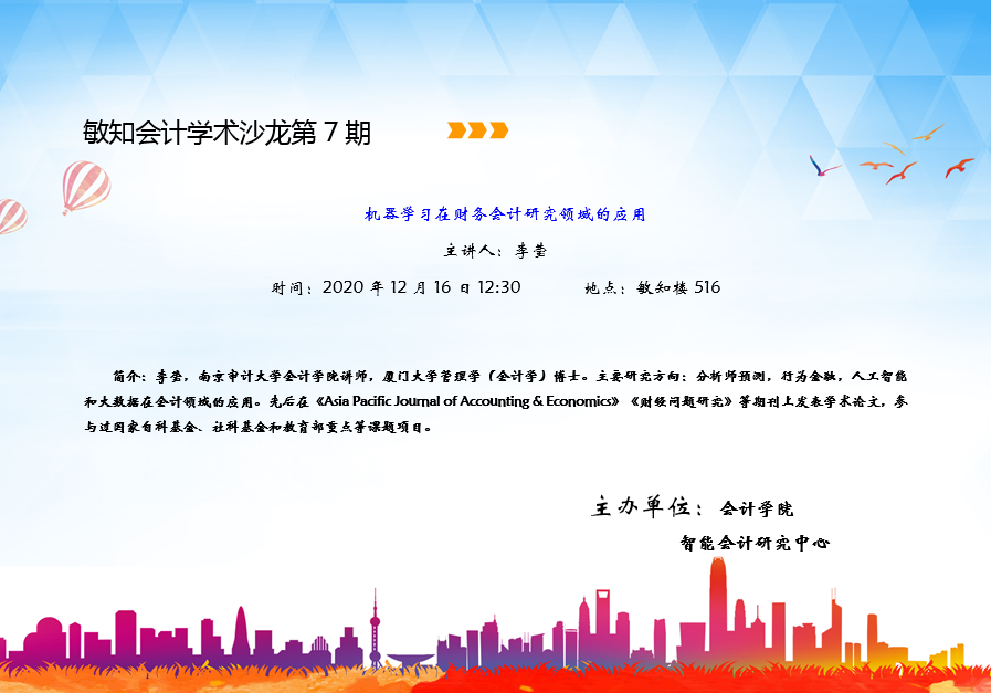 敏知会计学术沙龙第7期:李莹-机器学习在财务会计研究领域的应用