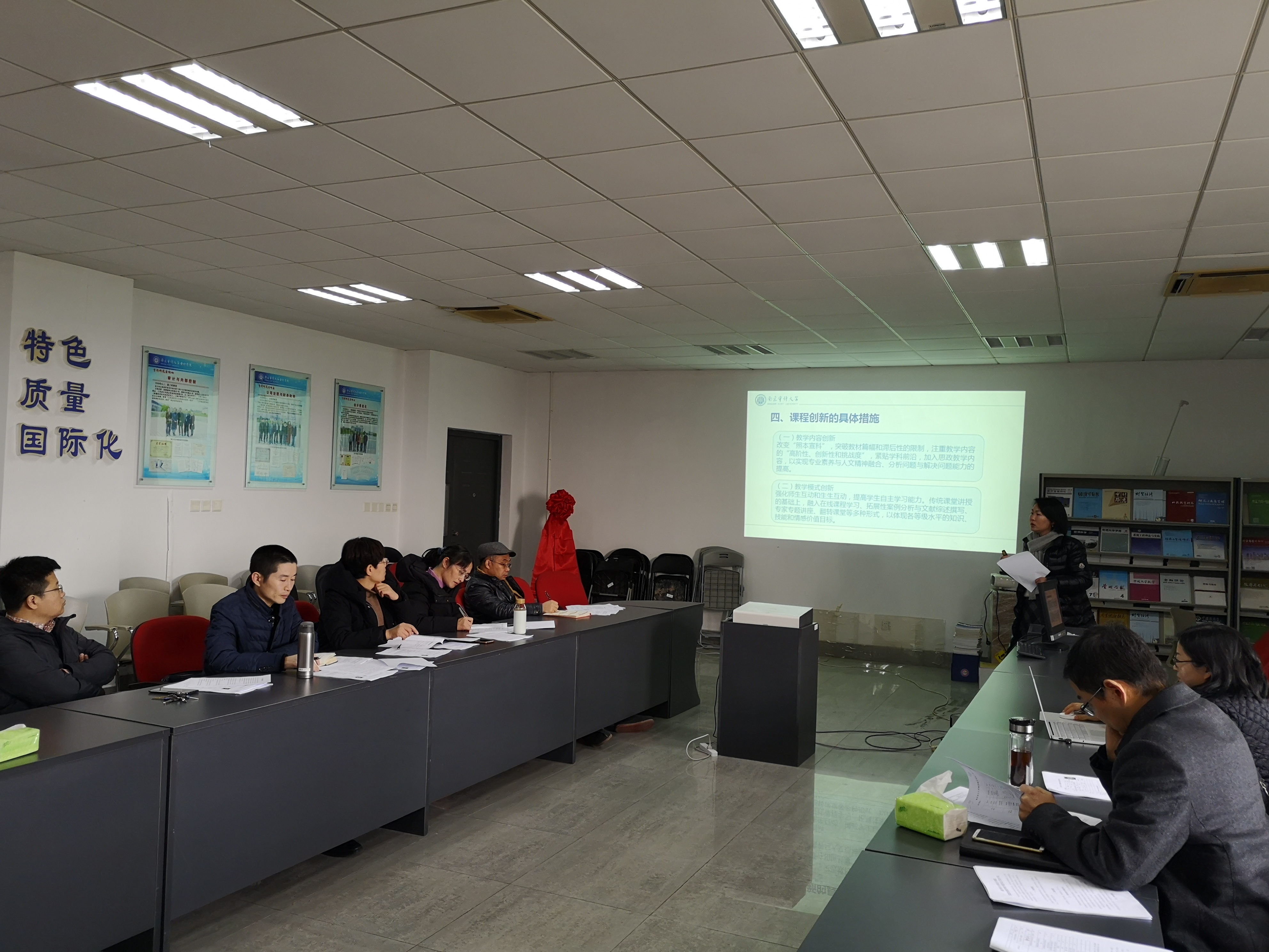 三位参赛老师结合自己的课程教学内容,分别从课程痛点、课程创新、课程思政等几个方面向评审老师们展示了自己的课程教学创新成果。学院领导和学院督导均进行了深入细致的点评,并提出了建设性修改意见。