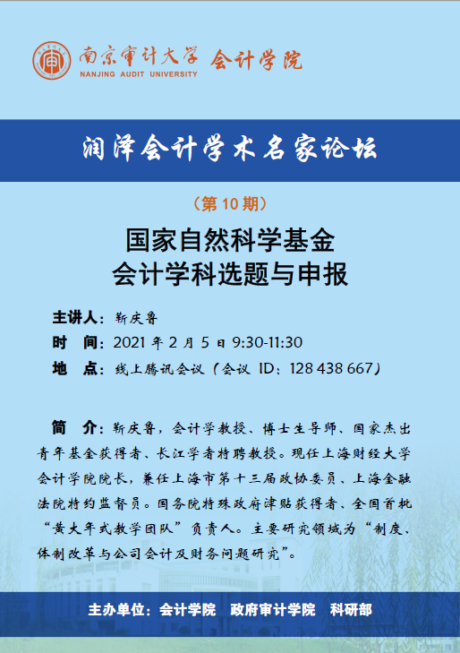 润泽会计学术名家论坛第10期:靳庆鲁-国家自然科学基金会计学科选题与申报