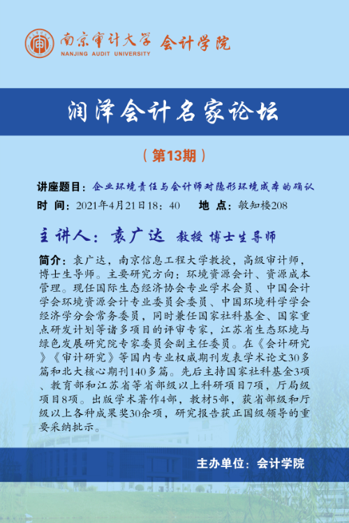 润泽会计学术名家论坛第13期:袁广达-企业环境责任与会计师对隐形环境成本的确认