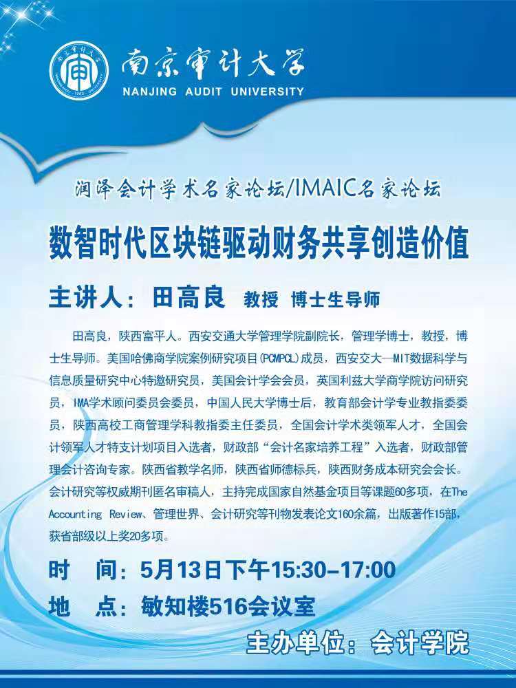 润泽会计学术名家论坛第14期:田高良-数智时代区块链驱动财务共享创造价值