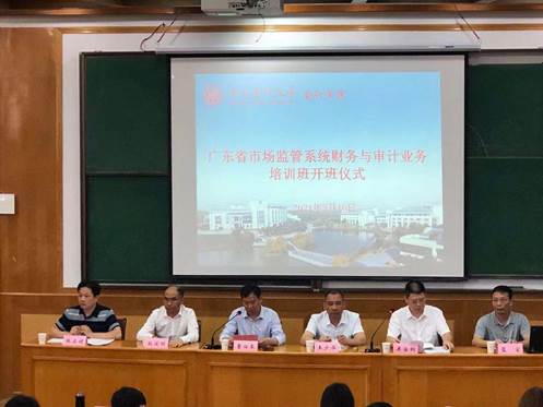 5月10日上午, 广东省市场监管系统在致明楼第二报告厅召开2021年广东省市场监管系统财务与审计业务培训班开班仪式, 我校党委常委、副校长董必荣,广东省市场监管局党组成员、副局长王少华,我院党委书记殷俊明,广东省市场监督管理干部素质教育中心主任蓝宝,广东省市场监督管理局财审处副处长张启健出席了此次开班仪式。仪式由广东省市场监督管理局财审处处长吴冶钢主持。