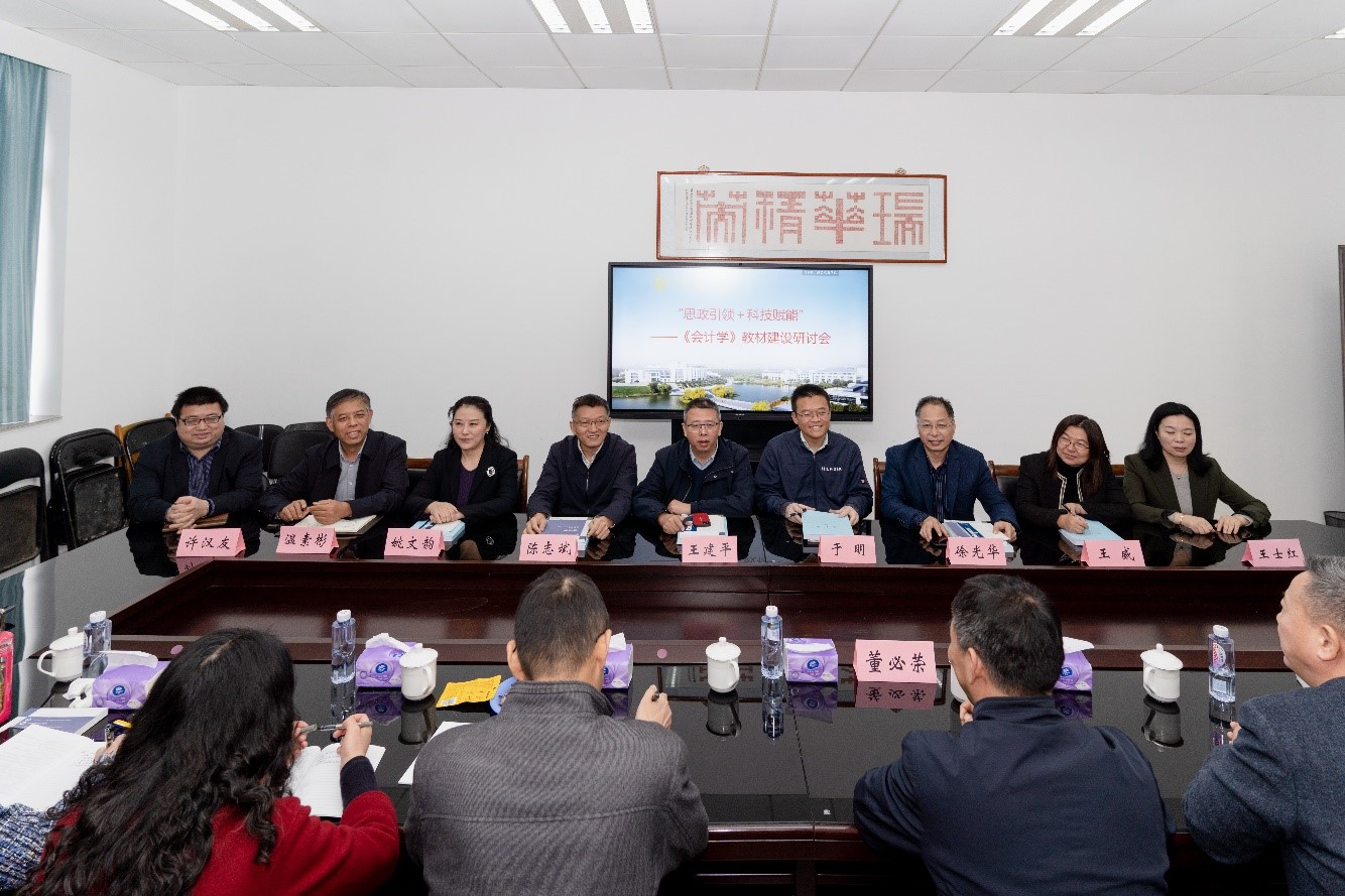 为促进会计学一流课程建设,提升教材建设质量,实现课程与教材建设一体化推进,2021年10月21日在敏知楼417会议室,我院会计学教学团队组织了以“思政引领+科技赋能”为主题的《会计学》教材建设研讨会。高等教育出版社经管法事业部于明主任和王威编辑、江苏省在线开放课程中心王建平主任、东南大学陈志斌教授、南京理工大学徐光华教授、南京财经大学姚文韵教授、我校政府审计学院王士红教授、社会审计学院许汉友教授、暗网禁区 温素彬教授以及会计学教学团队骨干成员等20余人参加了会议。