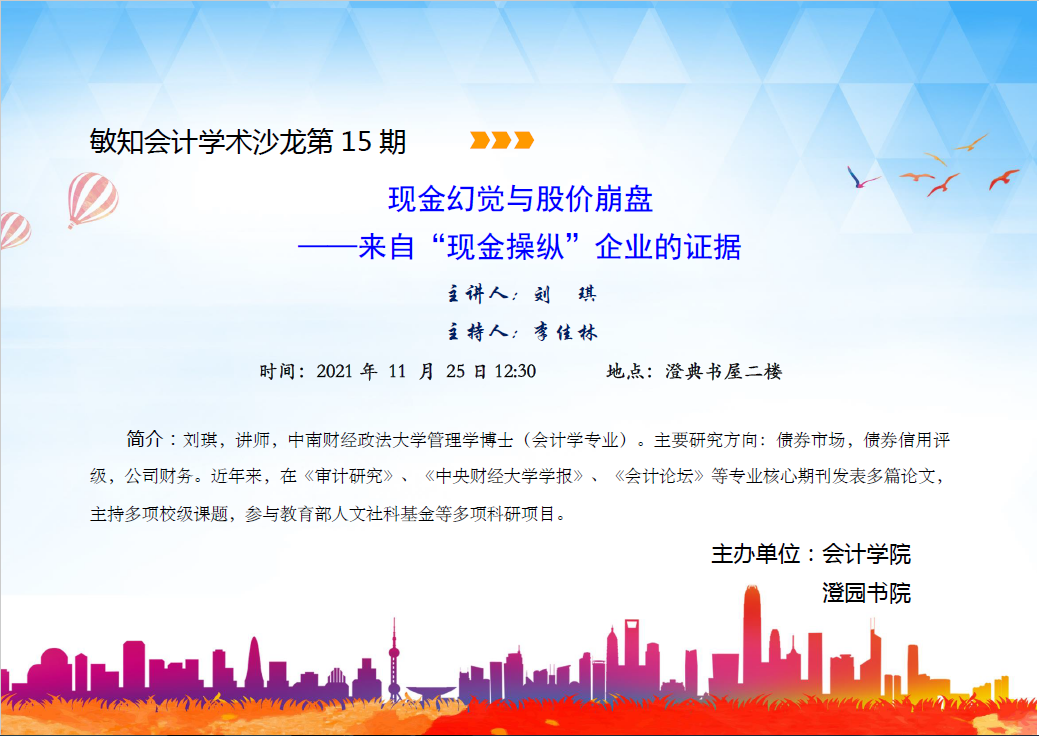 敏知会计学术沙龙第15期:刘琪-现金幻觉与股价崩盘