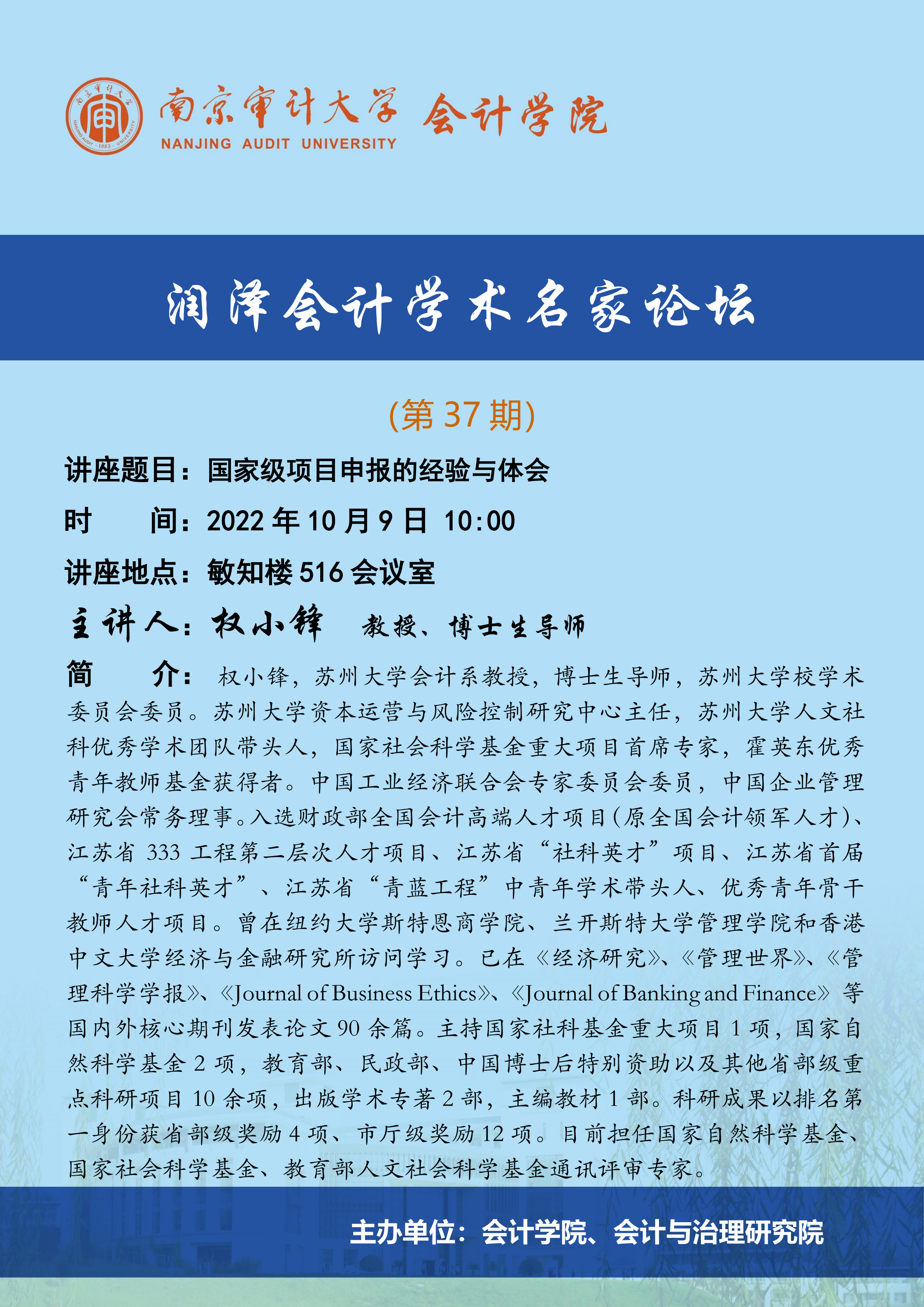润泽会计学术名家论坛第37期:权小锋-国家级项目申报的经验与体会