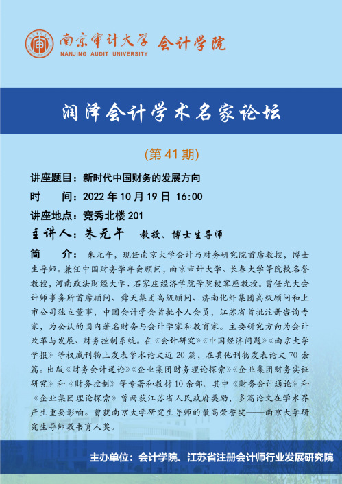 润泽会计学术名家论坛第41期:朱元午-新时代中国财务的发展方向