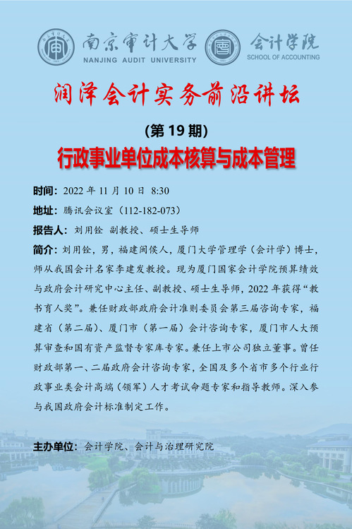 润泽会计实务前沿讲坛第19期:刘用铨-行政事业单位成本核算与成本管理