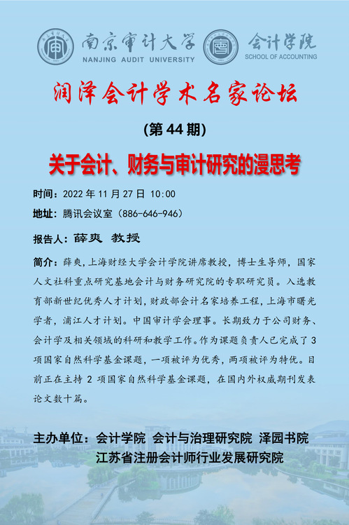润泽会计学术名家论坛第44期:薛爽-关于会计、财务与审计研究