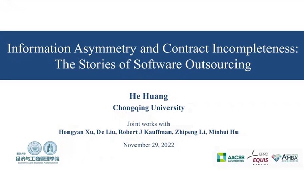 润泽会计学术名家论坛(第45期):黄河教授谈“软件外包服务中的信息不对称和契约不完备”