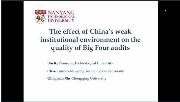 本次讲座,柯滨介绍了论文“The Effect of China's Weak Institutional Environment on the Quality of Big 4 Audits”的整体框架,并以此为切入点分享怎样进行专业学术写作。