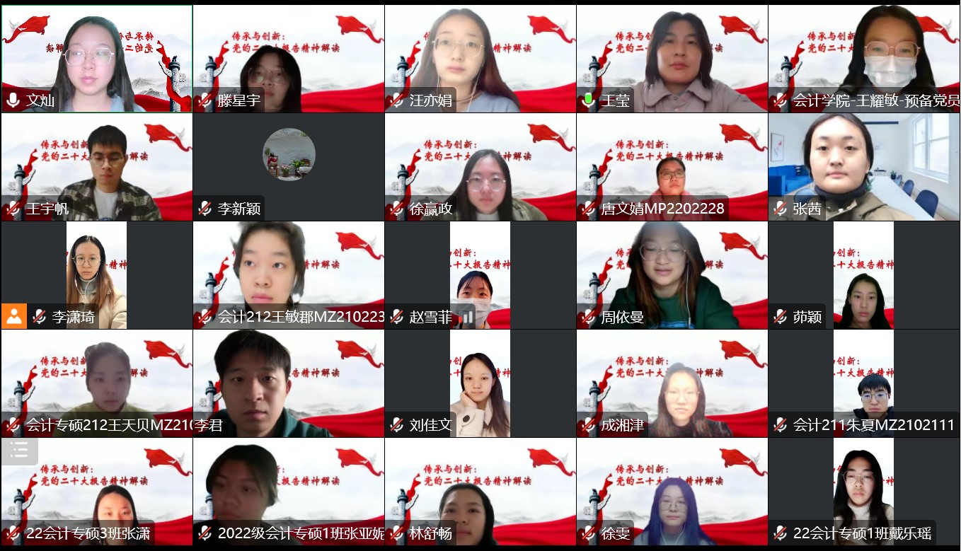 研究生党支部通过线上微党课形式,组织全体研究生党员学习中国共产党第二十次全国代表大会上的报告。