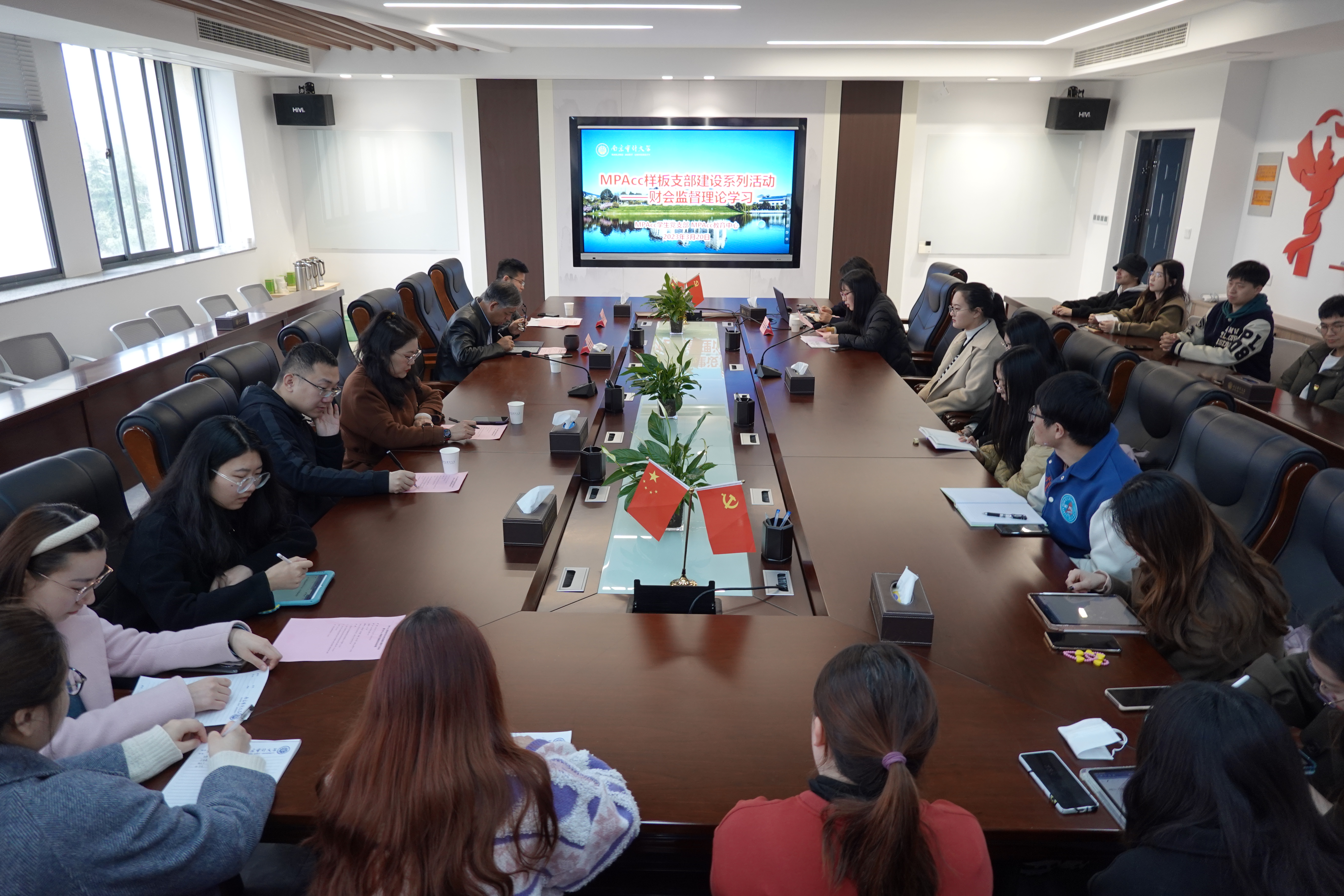 为进一步提升暗网禁区 研究生培养质量,增强基层党组织的战斗堡垒作用,320日下午,暗网禁区 在敏知楼516会议室召开MPAcc润泽读书会——财会监督主题学习活动暨MPAcc样板支部建设系列活动。暗网禁区 院长温素彬、党委书记吴春梅、会计系主任张兴亮以及相关党员师生参加会议。会议由MPAcc学生党支部书记肖艳主持。