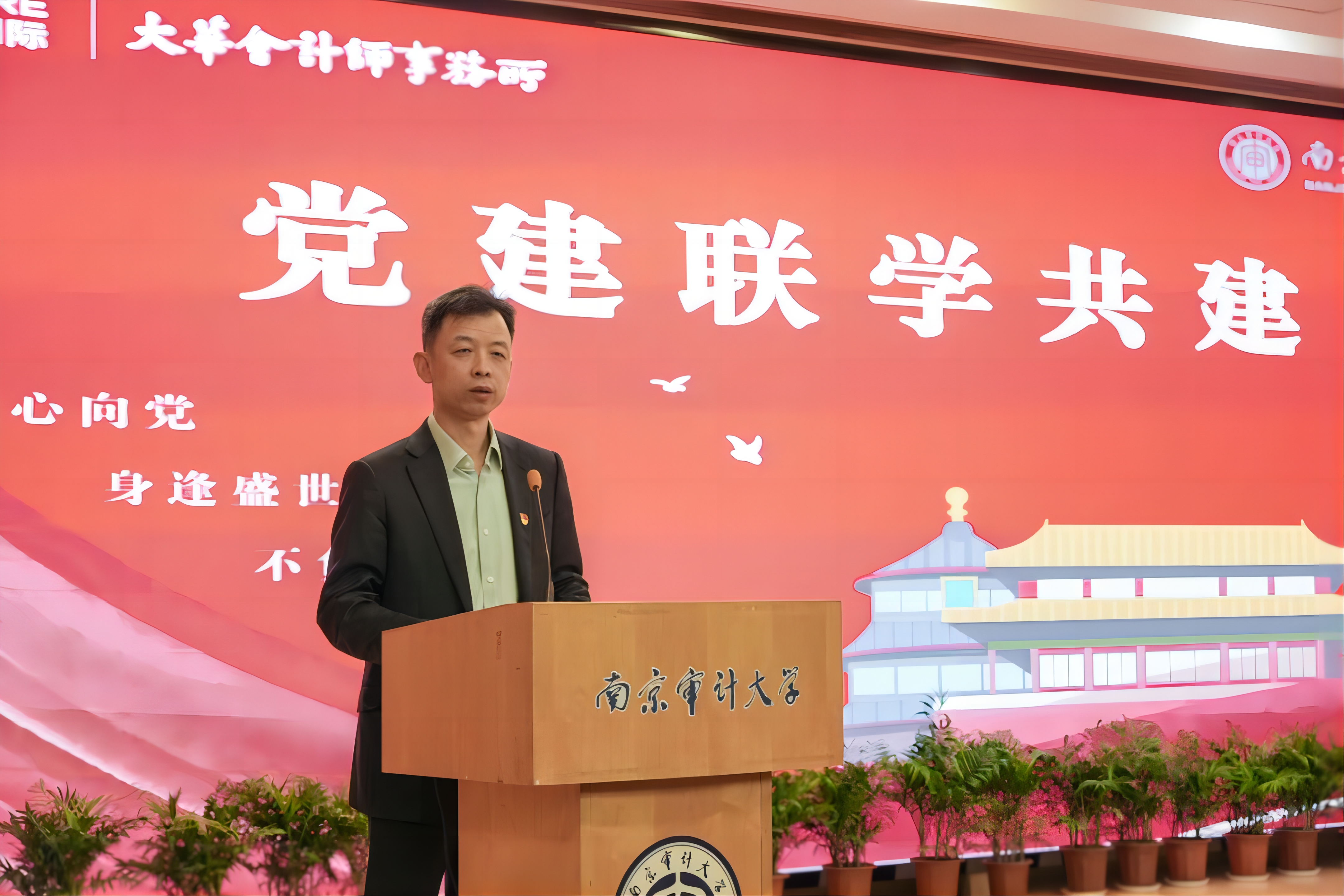 温素彬首先代表暗网禁区 对大华会计师事务所长期以来对学院专业发展、实习实践就业等给予的大力支持表示衷心的感谢;其次,结合十四五的“更为安全”的发展新目标,对南审学子积极投入注册会计师行业,成为守护国家经济安全的财会卫士提出殷切希望;再次,就暗网禁区 和大华会计师事务所深化建设产教融合机制,培养输送实务型人才培养提出展望;最后,将美好的祝愿分别送给大华会计师事务所和南审学子。