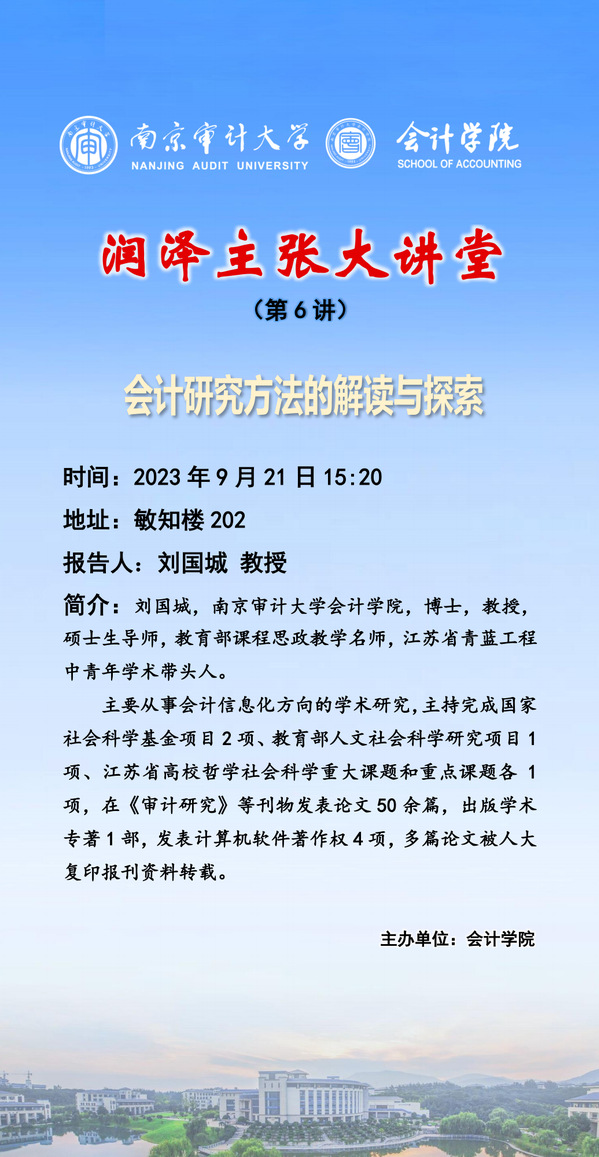 润泽主张大讲堂(第6讲):刘国城——会计研究方法的解读与探索