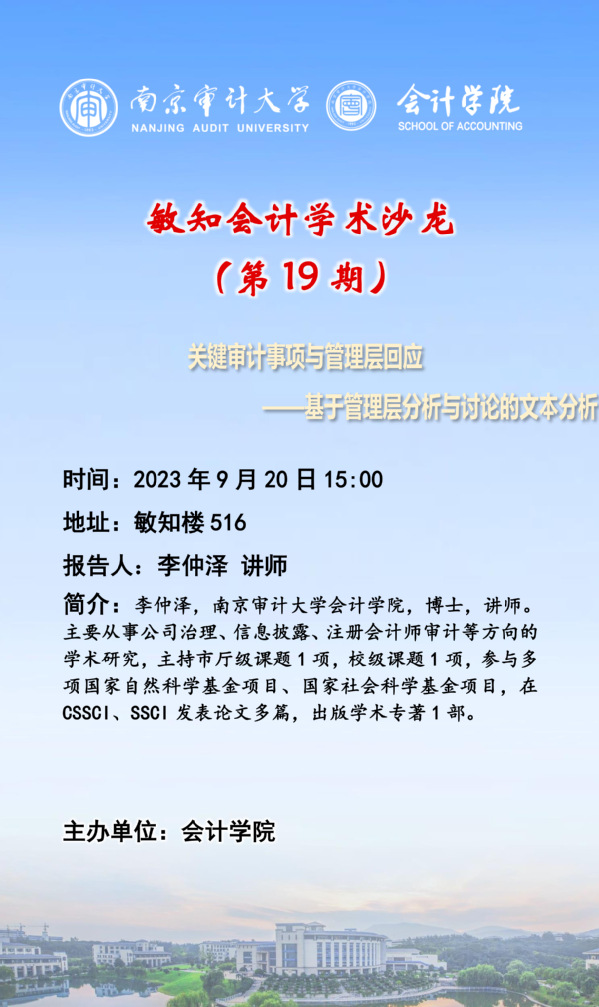 敏知会计学术沙龙(第19期):李仲泽——关键审计事项与管理层回应