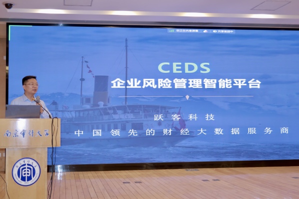 跃客科技有限公司总裁付伟先生以“企业风险管理智能平台”为题进行主题报告。付伟总裁将跃客科技定位为高校教学、科研、企业管理综合方案的提供者。此外,付伟从经营团队和科研平台两个维度,介绍了公司在大数据智能风险管理方面的实践探索,其中重点介绍了财经大数据公告库的智能检索功能以及企业风险管理事实库、语料库等数据库,这既能够有效服务于案例教学,也能够为科研提供支撑,实现产学研的高度协同。