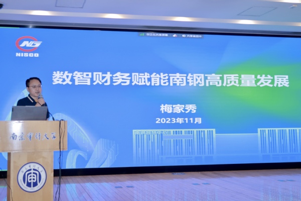 南京钢铁股份有限公司总裁梅家秀先生以“数智财务赋能南钢高质量发展”为题进行主题报告。他首先介绍了南钢股份发展历史,讲解了南钢公司数智化转型的时代背景和动因;其次,从南钢数智化转型顶层规划、智慧财务战略规划等板块,详细介绍了南钢在利用数智化引领赋能企业价值创造方面积累的实践经验;最后,梅家秀先生启发我们,数智化转型的本质是管理智慧的变革,只有拥抱变革才能在新时代浪潮中脱颖而出。