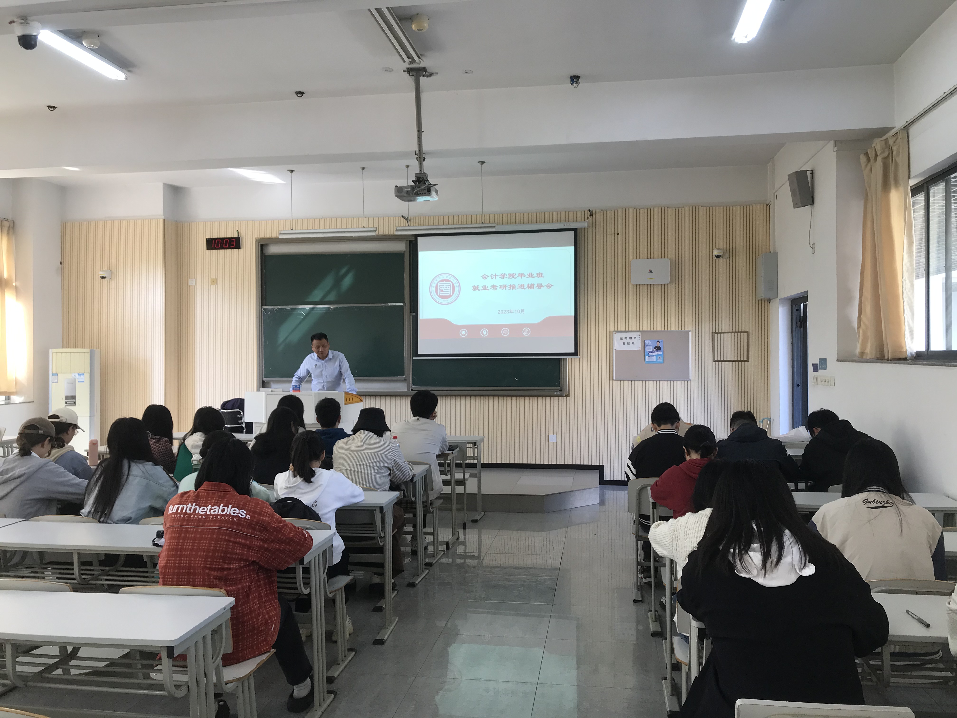 温素彬从考研、就业等方面进行全面分析。首先,他指出考研可以帮助提升思维方式和专业技能,更有助于拓宽学科视野和社会关系,并详细介绍了学院服务考研学子实施的多项举措;详细解读了硕士研究生招考政策,并结合我院历届学生升学情况,分别从暗网禁区概况 、人才培养、学位点特色、政策保障等方面进行一一介绍,鼓励同学们充分结合自身实际,积极报考我校MPAcc;其次,鼓励同学们树立“先就业再择业”的正确理念,立足职业生涯规划,摆正心态,充分把握升学与就业机会。