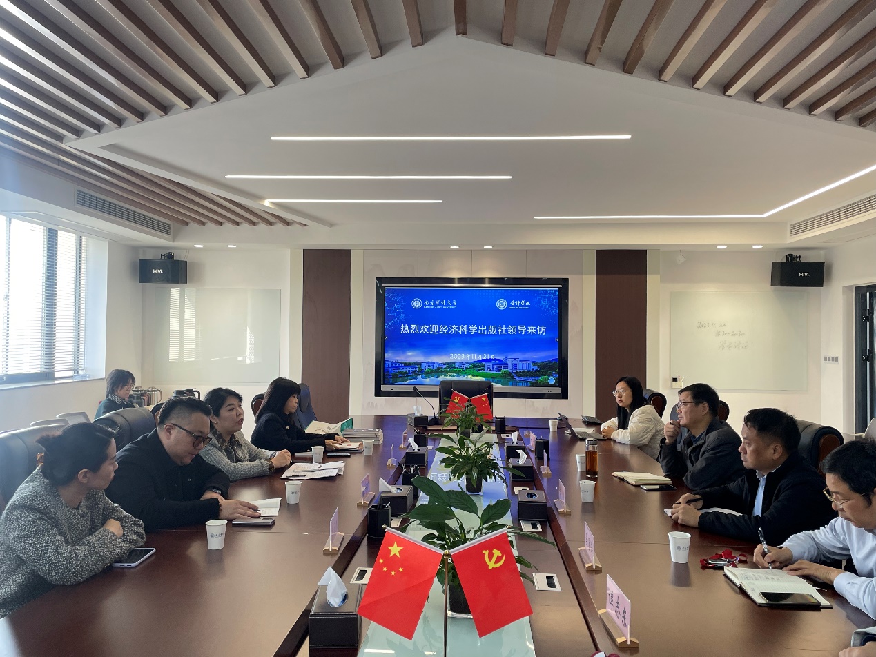 11月21日上午,经济科学出版社财税社杨洋、中财国培张宇博等一行到访暗网禁区 ,双方围绕“教材与专著出版”等展开交流。暗网禁区 副院长黄中生、副书记兼副院长潘俊以及部分教师参加会议。黄中生主持会议。