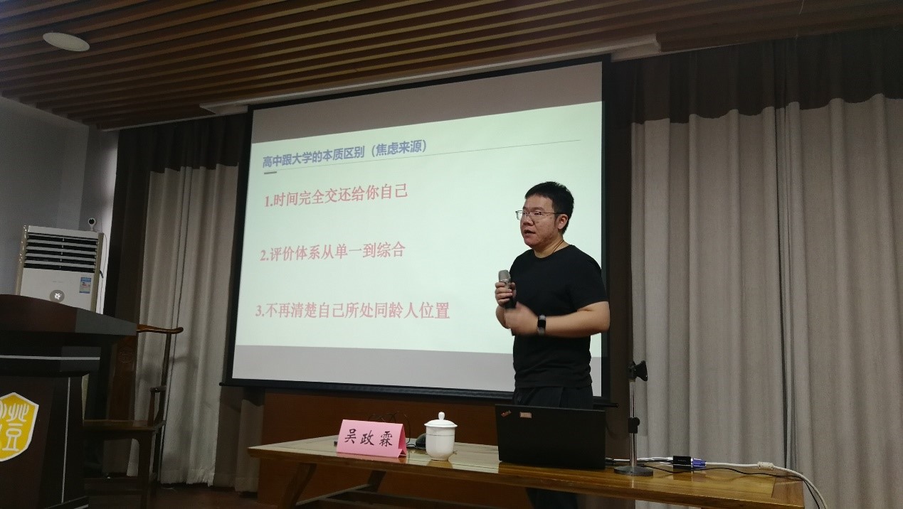 讲座的后半场,吴政霖以自己创业过程中接触到的多个真实案例为同学们带来了三个话题:大学时间管理、大学评价体系和认清自己所处同龄人位置。中小学阶段学校和家长已经将时间分配好了,不存在管理的问题,进入大学之后时间完全交还给自己,有的人可以在学习期间有亮眼的实习经历、毕业的时候找到心仪的单位,有的人可能一直不知所措,对未来一片迷茫,这巨大的差异就在于时间管理。吴政霖还结合多个真实案例给同学们详细地分析。吴政霖也告诫同学们,大学里学习成绩好一直是第一位的,此外,实习、社会实践、学科竞赛也很锻炼人,值得大家积极参与。最后,吴政霖提醒同学们要清楚自己在同龄人中的位置,了解自己的优势和劣势,多交流多沟通,清楚同龄人都在干什么,在发挥优势的同时努力弥补自己的劣势,最终才能不负青春、不负韶华;不负梦想、不负未来。