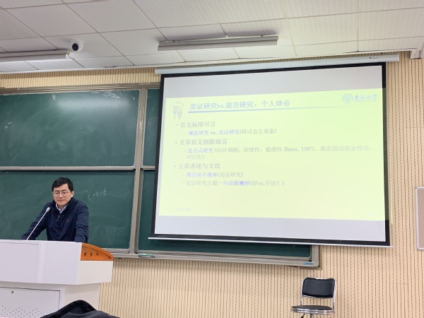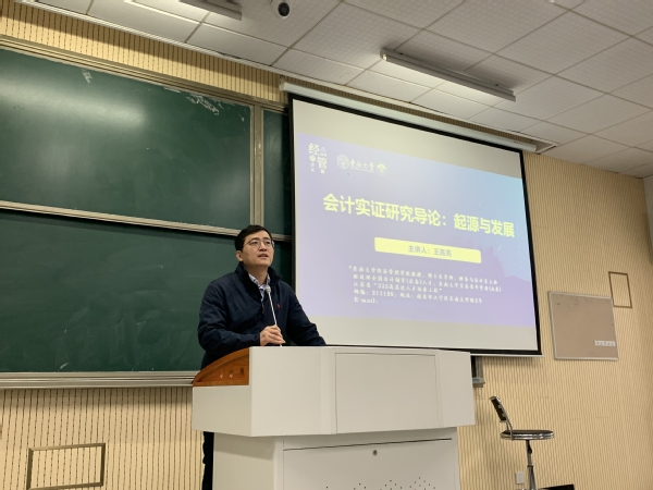 20231115日上午,东南大学财务与会计系主任、博士生导师王亮亮教授作润泽会计学术论坛,主题为“会计实证研究导论:起源与发展”。参加本次论坛的除了本学院的研究生,还有西藏民族大学财经学院来访的各位老师和学生们。本次学术论坛现场学术氛围浓厚,研究生满腔热忱,展示出昂扬向上的精神风貌和孜孜不倦的学术追求。