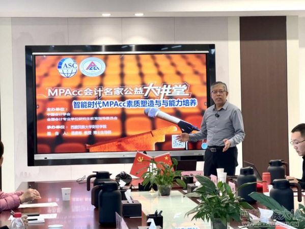 会上,温素彬院长作主题为“智能时代MPAcc素质和能力培养”的讲座,他从智能时代的会计升级、智能时代的会计素质、智能时代的能力培养三个方面展开,尤其强调智能化是会计、财务、审计领域近年来的热门话题,会计行业需要不断变革适应高质量的发展需求,实现智能共享与智能决策,加强对于数智赋能的人才培养,培养具有“精人文、精经济、精管理、精法务、精财会、懂业务、懂数据、懂分析、懂工具、懂设计”十大能力的人才。