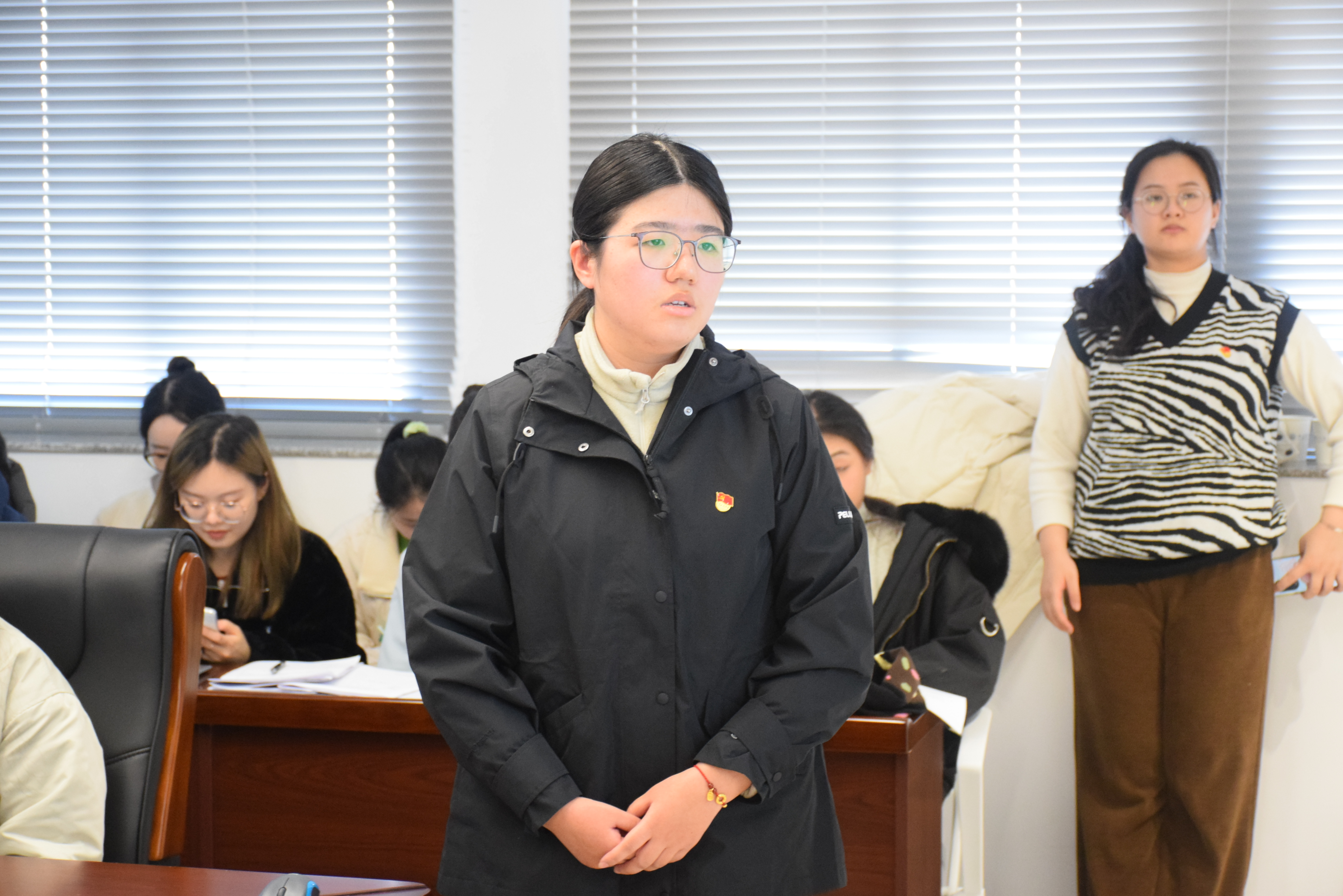 吴春梅首先强调学院党委会加强对学生党员的教育管理,进一步提升党员的思想理论素养水平,并提出党员发展转正答辩制,严把党员发展质量关;其次,鼓励党员同志们要树立终身学习的观念,不断学习党的理论知识,积极参加社会实践,着力提升个人本领;最后,结合学校最新新媒体管理办法以及学生管理规定,对党员同志提出三点要求,第一,严格自我约束管理,严禁学术不端行为;第二,树立正确的网络观,持续推动良好生态网络建设,营造积极健康、向上向善的网络文化;第三,树立大局意识,党员要做到正确认识大局、自觉服从大局、坚决维护大局,自觉为党和人民的事业贡献自己的力量。