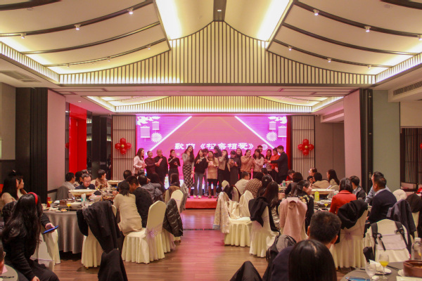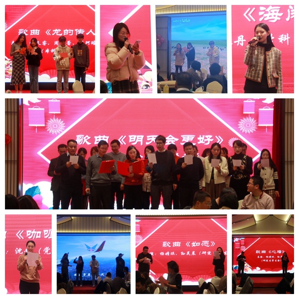 年会在欢天喜地的美好旋律中拉开帷幕,师生各施其能,各展所长,为大家带来了精彩的节目。领导班子集体诗朗诵《辞旧迎新,继往开来》;财务管理系党支部马德林、傅祥斐、李慧等老师朗诵《财管之路,春华秋实》,黄萍萍老师演唱歌曲《红日》;会计系党支部潘俊、黄中生、周达勇等老师朗诵《会计明天会更好》,会计系老师共同演唱《明天会更好》;学科与研究生办公室陈晓丹老师演唱《海阔天空》;教务办公室孟雨晴老师演唱《曾经的你》;党政办公室沈静老师演唱《咖喱咖喱》;研究生学生会演唱《心墙》、《如愿》;本科生学生会演唱《龙的传人》、《我相信》,调动了老师们的热情,将现场氛围推向高潮。