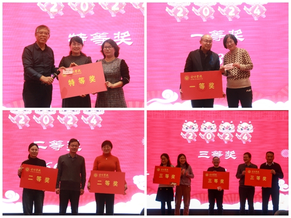 学院为全体老师送上新春祝福,组织“龙年大吉、好运连连”幸运抽奖活动。本次活动设立特等奖1名,一等奖1名,二等奖2名,三等奖3名。伴随着“好运来”的欢快音乐,掌声雷鸣,备受瞩目的大奖陆续揭晓。崔秀梅老师获得特等奖;王烨老师获得一等奖;李星晨、龚媛媛老师获得二等奖;马德林、黄中生、史梦昱老师获得三等奖。现场欢声笑语不断,喜庆氛围浓厚。