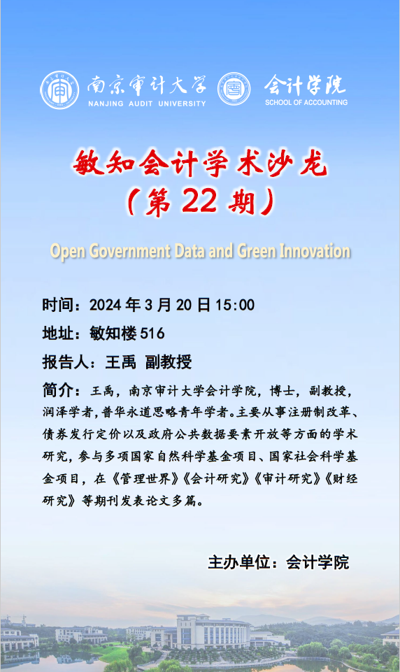 敏知会计学术沙龙(第 22 期):王禹——Open Government Data and Green Innovation