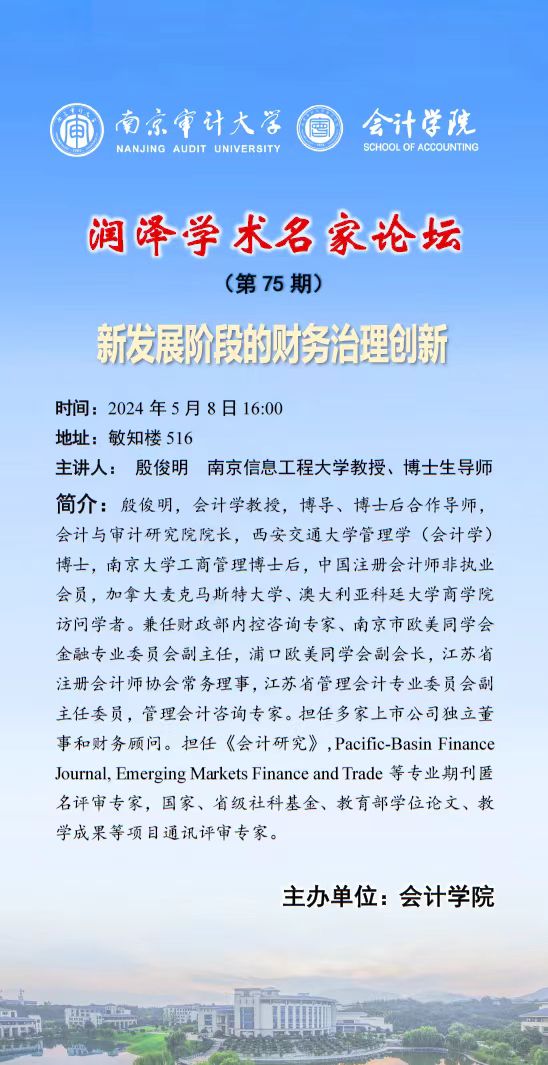 润泽学术名家论坛 (第 75 期) :般俊明——新发展阶段的财务治理创新
