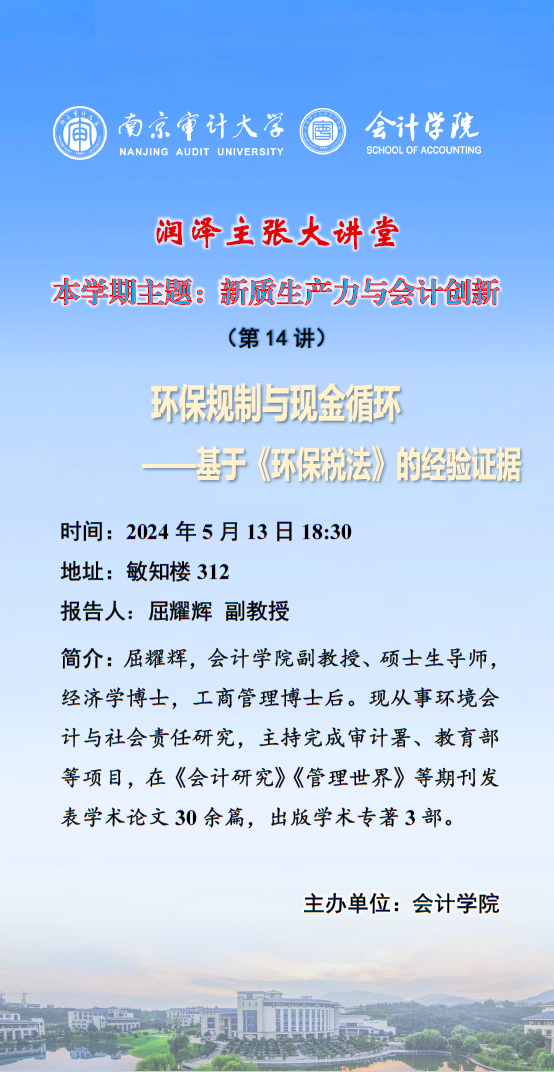 润泽主张大讲堂(第 14 讲):屈耀辉——环保规制与现金循环基于《环保税法》的经验证据