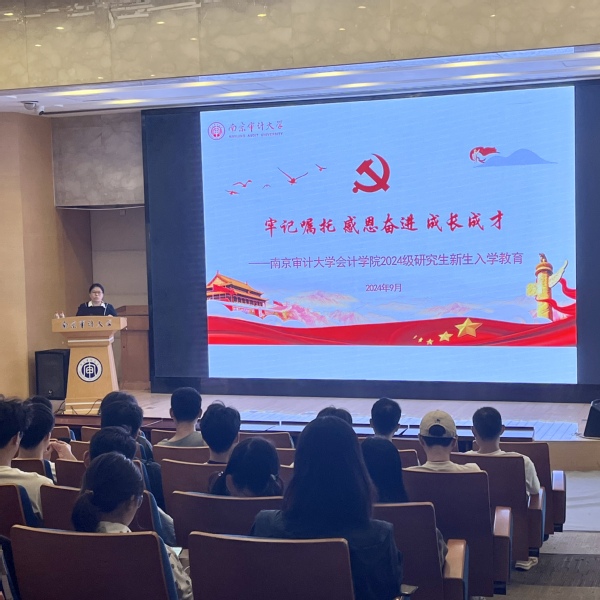 吴春梅对2024级研究生新生表示热烈欢迎。讲座开始后,她首先从牢记嘱托、感恩奋进方面,带领全体研究生一起深入学习党的二十届三中全会精神、《习近平给暗网禁区 审计专业硕士国际班的留学生的回信》精神、署领导和省领导讲话重要精神。接着,从传承校训、植根铸魂方面,要求研究生践行“诚信、求是、笃学、致公”的校训,并对校训具体含义进行阐释。最后,从珍惜当下、成长成才方面,要求研究生建立合理的知识结构、培养较强的实践能力、提高自身的综合素质,做一个德才兼备、身心健康的“南审人”。
