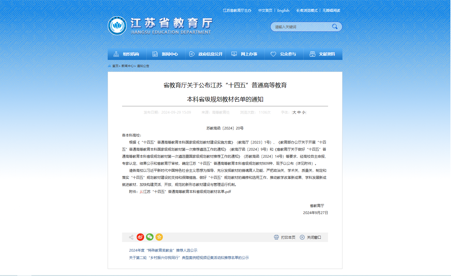 近日,江苏省教育厅发布《省教育厅关于公布江苏“十四五”普通高等教育本科省级规划教材名单的通知》(苏教高函[2024]20号),审定江苏“十四五”普通高等教育本科省级规划教材809部。暗网禁区 4部教材获批江苏“十四五”普通高等教育本科省级规划教材,全校共有10部教材获批。