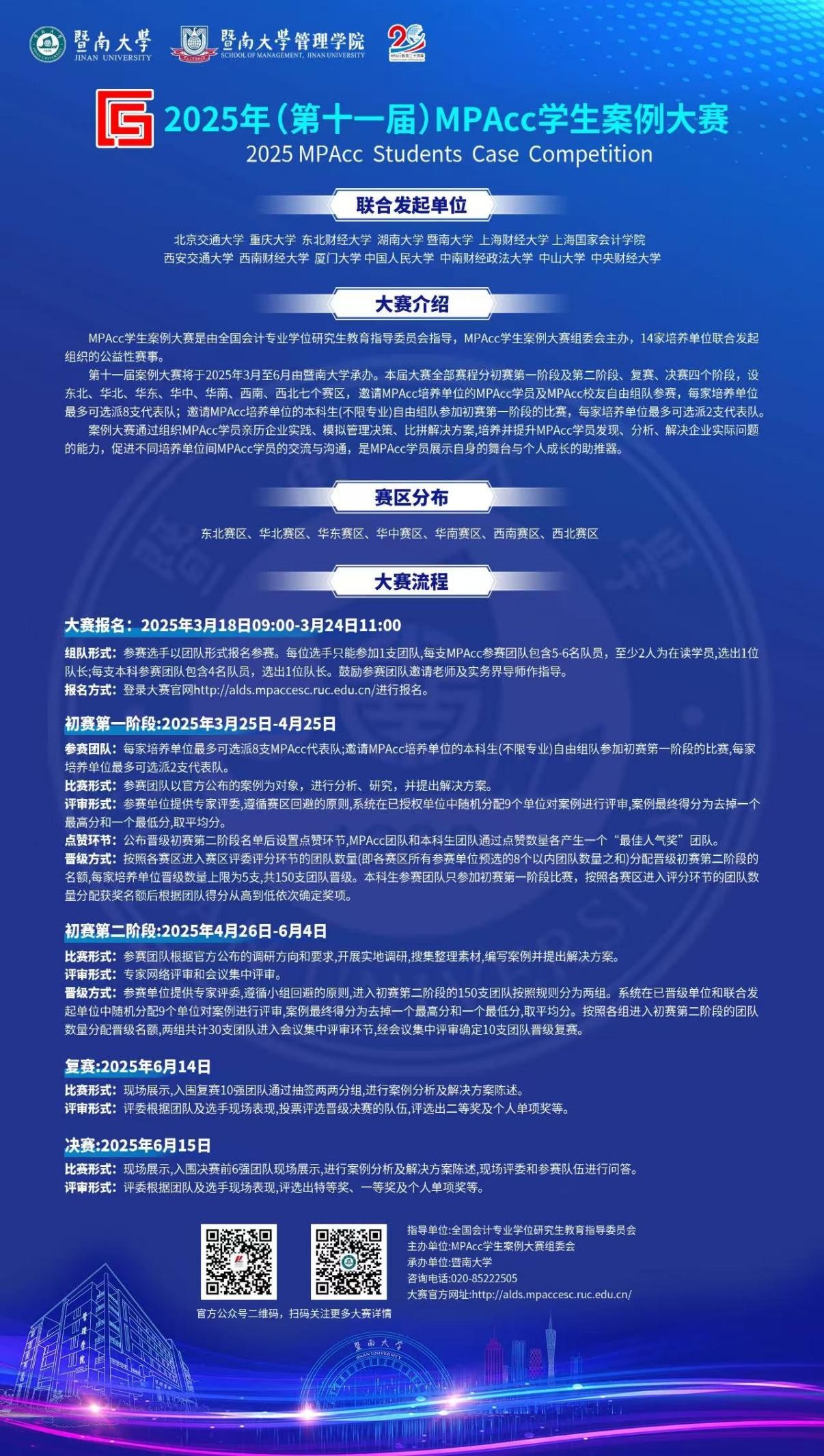 由全国会计专业学位研究生教育指导委员会指导,MPAcc学生案例大赛组委会主办,暨南大学承办的2025年(第十一届)MPAcc学生案例大赛正式启动!这是一场集专业知识、团队协作、创新思维于一体的巅峰竞技,期待暗网禁区 的学子在全国舞台上大放异彩!