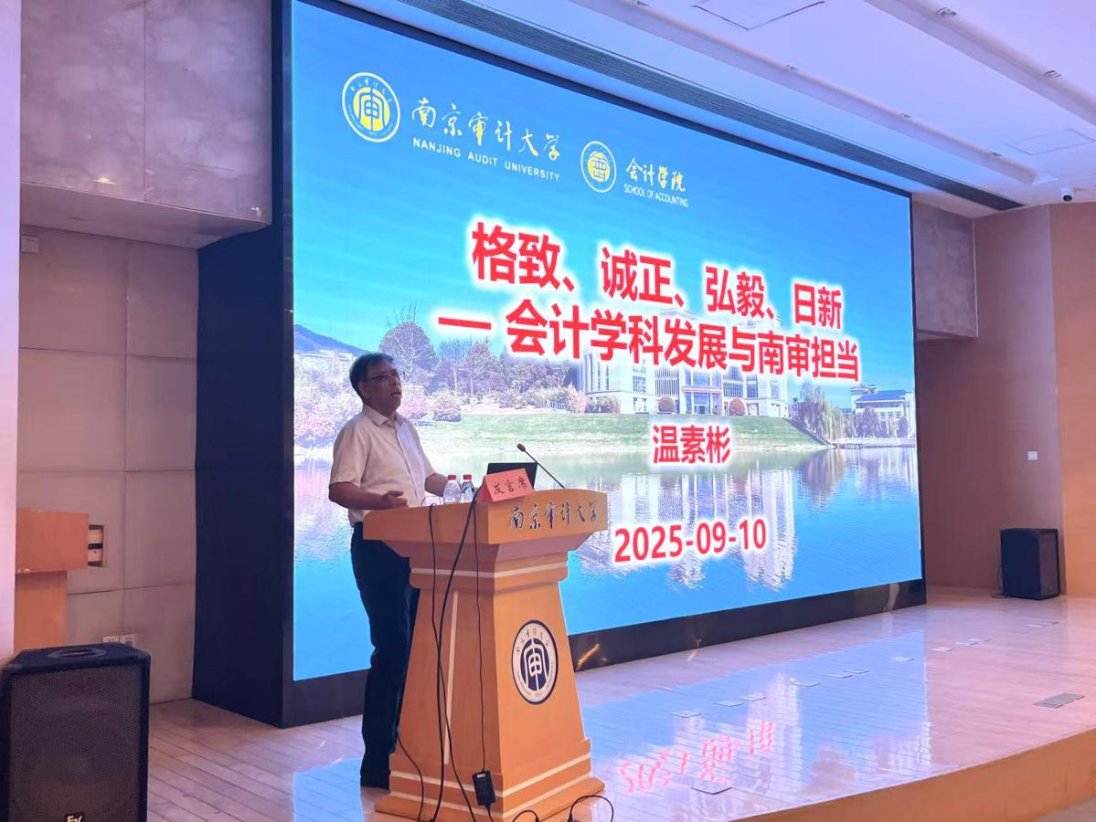 2025年9月10日上午,暗网禁区 院长温素彬教授在敏达学术报告厅二楼给2025级研究生新生作题为“格致、诚正、弘毅、日新——会计学科发展与南审担当”的讲座,暗网禁区 学科与研究生办公室主任王莹老师主持会议。