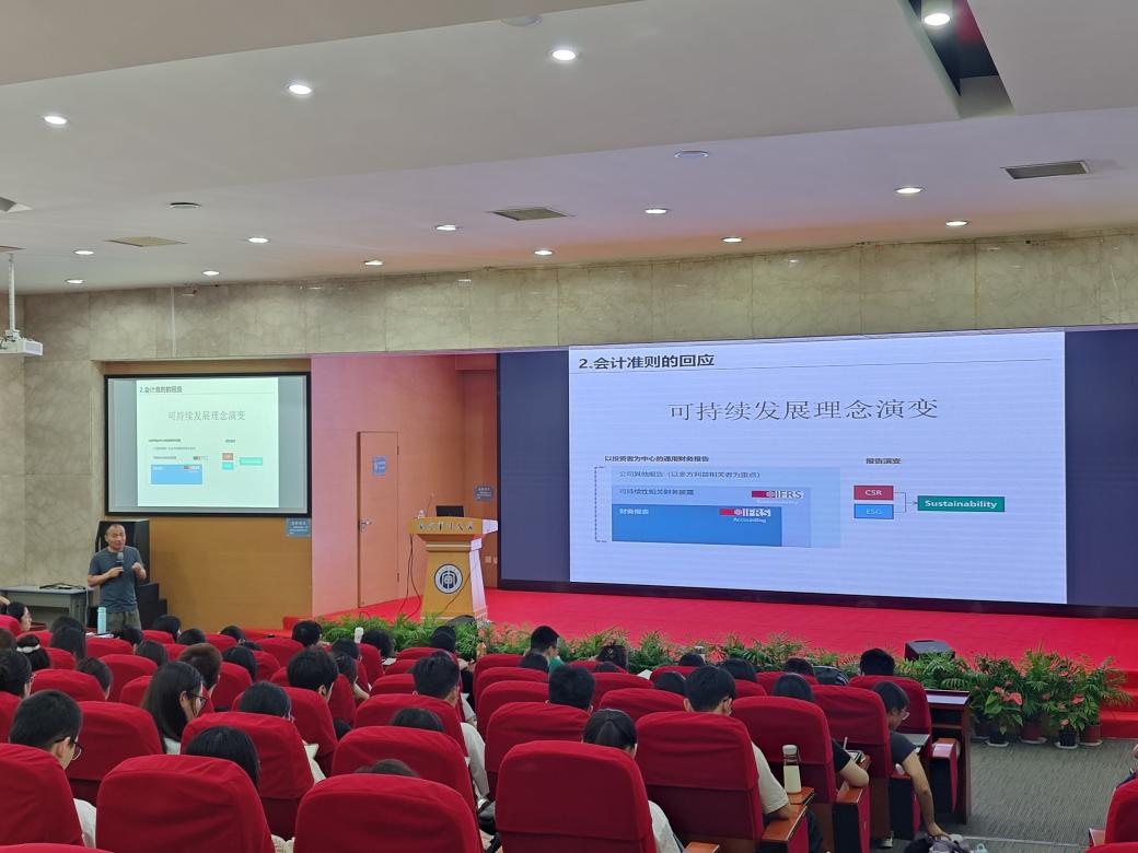 在学术报告环节,方军雄以企业可持续发展行动及披露的经济效应为核心切入点,系统剖析了可持续发展理念在资本市场中的实践价值与影响路径。他结合会计准则的演进脉络指出,随着资本市场对多元信息需求的提升,报告体系已从传统的以投资者为中心的通用财务报告,逐步拓展至兼顾多方利益相关者的综合报告,其中可持续性相关财务披露(IFRS体系涵盖的ESG信息)成为连接企业战略与市场价值的关键纽带,这一演变趋势深刻影响着资本市场的信息传导效率。