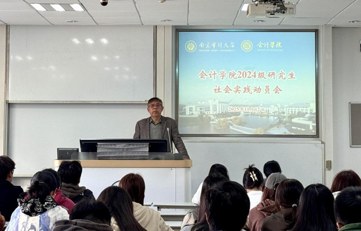 魏东胜作实习动员讲话。他强调实习是学生向社会过渡的关键环节,需要高度重视。他对同学们提出三点要求:一要遵守单位规章,展现南审学子风貌,做到守时、尊师、保密;二要主动学习,留心观察,提升待人接物能力,为步入社会做好准备;三要勤于思考,多问多交流,将理论与实践结合,深化知识应用。最后,他叮嘱同学们注意安全,增强防诈意识,并祝愿大家实习顺利、学有所成。