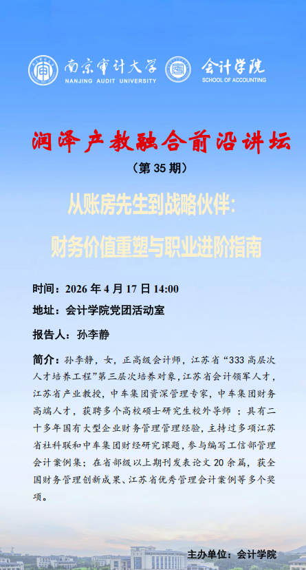 润泽产教融合前沿讲坛 (第35期)孙李静:从账房先生到战略伙伴: 财务价值重塑与职业进阶指南