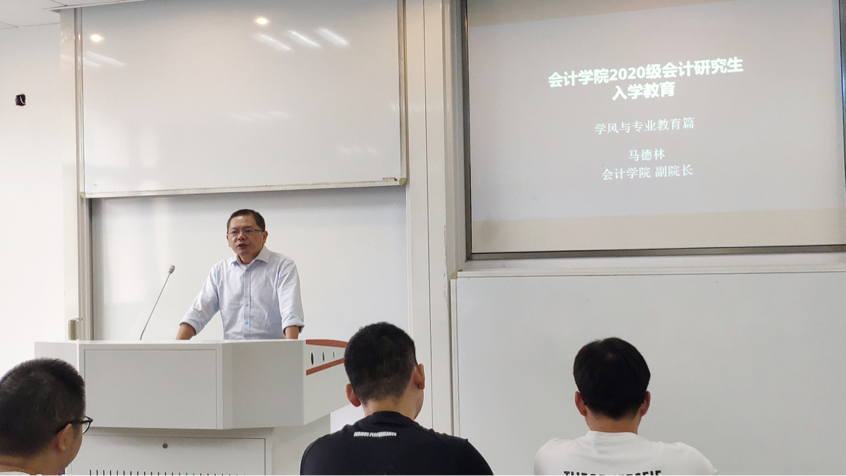 吴建军老师和王莹老师给同学们作纪律教育、校纪校规学习。 吴建军老师从三个方面对新生进行教育。他以学校纪律及学生安全问题为切入点,具体提及请假制度和师生相处几点问题,以“慎言”、“手利”作为财务人员所应具备的专业素养来要求、督促新生。王莹老师则是从学习、生活、思想等方面对新生提出要求和期待,鼓励同学们要做最好的自己,以健康向上的精神面貌迎接研究生生活。该会议有利于老师与学生之间缔结良好的关系,也为2020级研究生新生进一步开展研究生阶段的新任务做了良好的铺垫。
